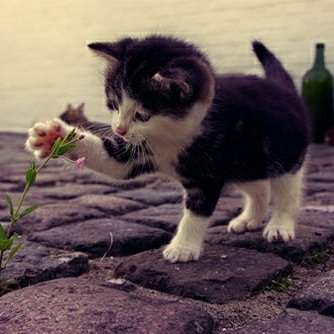 不理会黑猫在空中乱蹬的四肢和凶狠的神情,笑眯眯的看着他。