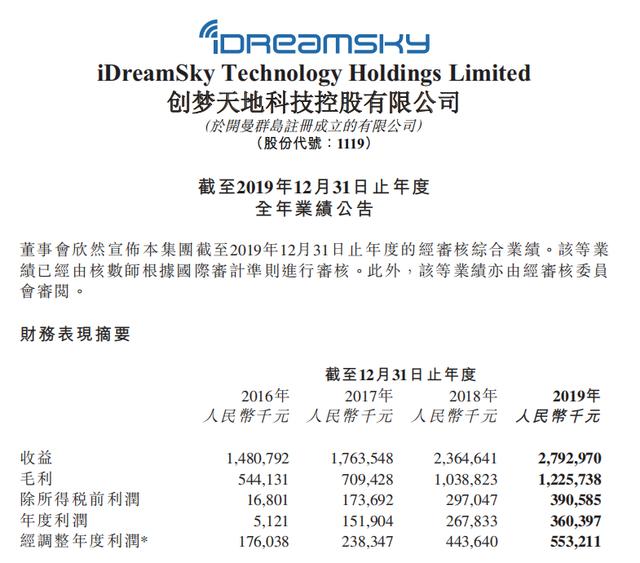 3月27日,创梦天地(01119.HK)公布2019年全年财报。财报显示,创梦天地2019年营收27.93亿元(人民币,下同),同比增长18.1%;年度净利润为3.6亿元,同比增加34.6%;年度经调整利润为5.53亿元,同比增加24.7%;每股盈利0.29元。