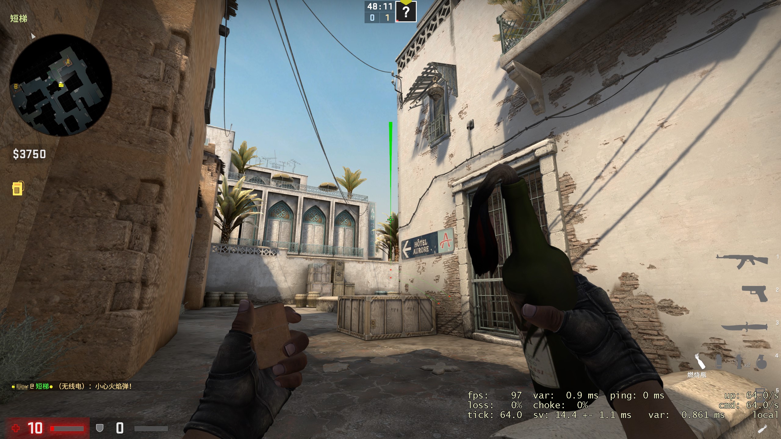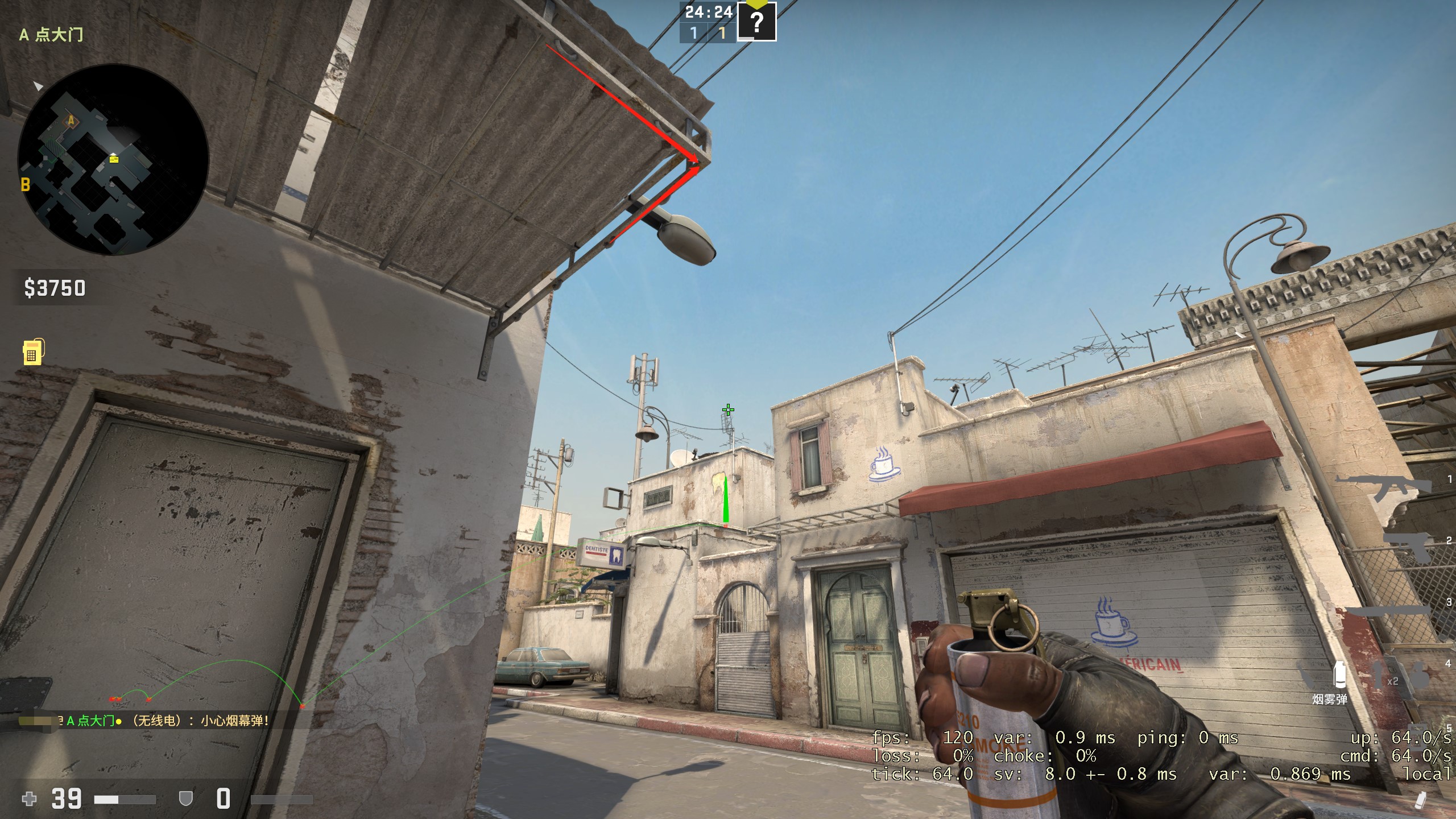 A小有一个非常好用的弹墙闪,瞄准墙壁,走一步跳投,闪光弹会弹过半开的窗户,直接能白到A小的最深处,这个看起来好像很难,实际上,稍微练习就可以轻松投出,而且非常好用。