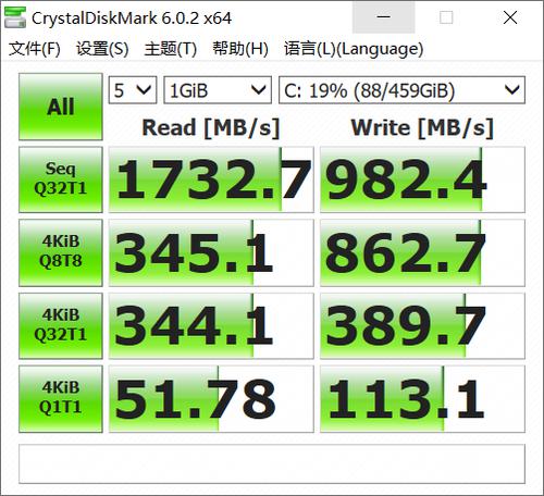 这块硬盘的顺序读取速度位1732.7MB/s,写入速度为982.4MB/s,属于中端水平,但是足以满足系统快速启动,大容量数据传输等。