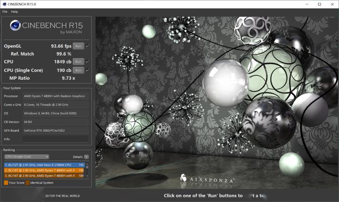 R15最多能够支持256个逻辑核心,并加强了着色器、抗锯齿、阴影、灯光以及反射模糊等的考察,对CPU性能的检测更加准确。就CPU而言,最终的成绩多核得分1849cb,单核得分190cb。