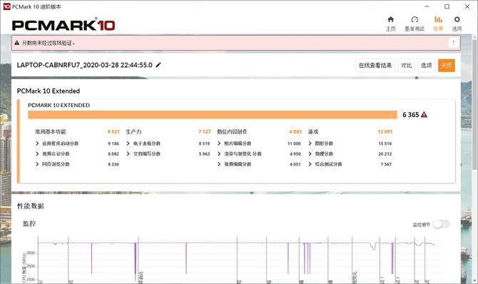 综合性能方面,我们使用PCMark 10的标准模式对其进行了评估。从结果可以看到,包含网页浏览、视频会议、应用程序启动等得分为8521分;生产力项目测试中得分为7127分,说明其完成电子表格、文档工作没有压力;数位内容创作得分6043分,说明其完成图片、视频、渲染等工作毫无压力;另外其游戏性能评分也达到了12091分,图形和物理分数表现优异。综合性能得分为6365分,这样的表现不仅足以胜任各种游戏,对于内容创作者来说也是毫无压力。