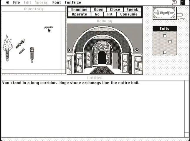 最早 Macintosh 版本的游戏画面,黑白但更精细一些