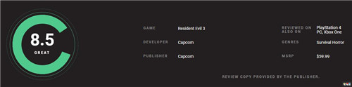 DualShockers的评测者表示他绝对推荐这次的《生化危机3重制版》,有相当的一部分《生化危机》粉丝最终会喜欢这部重制版,他也不会惊讶。《生化危机3重制版》有着非常好的动作感、紧张的探索和恐怖元素。不过在生存恐怖的视角来看,《生化危机3重制版》对比《生化危机2重制版》有明显的退步。