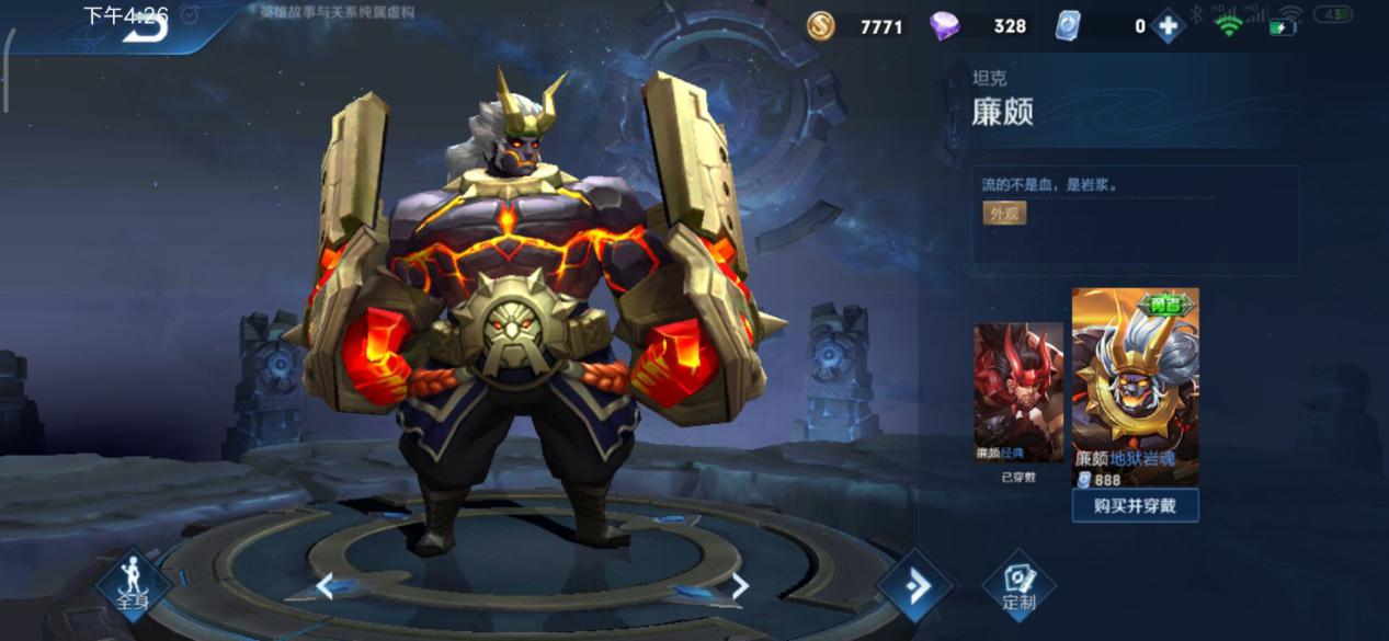 从外观上来看,廉颇仿佛被岩浆包裹起来了一样,从视觉感官上,就给玩家坚硬的感觉。其头上的两个角,使得廉颇仿佛地狱中的厉鬼一般。而廉颇作为一个十分强势的辅助,有不少妹子还是会选择玩他。不过千万不要用到这个皮肤,因为实在是太有损形象了。