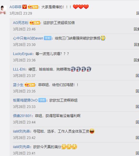 当然,老板肯定是最开心的,AG菲姐可是太有能力了,都清楚的,之前AG超玩会夺冠,菲姐可是放话涨工资的,这次AG的CF分部可是创造了历史,这又是要涨工资了啊,没毛病。