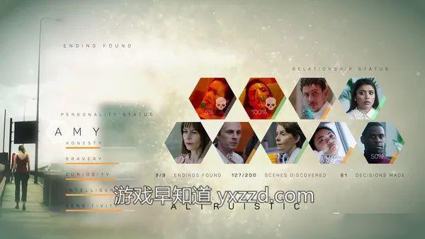 主角的性格取决于玩家的每一个决定和每一次互动,在剧情结尾,您将获得一个性格评分与评析。通过这些信息数据,您可以更清晰地了解自己的游戏过程,同时探索人格的五大基本特质:开放性,责任心,外倾性,宜人性,与神经质性。那么最终玩家的角色会是什么样的性格呢?