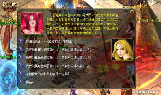 除了为各位《魔域》勇士带来愚人节的玩笑欢乐外,太阳马戏团还开启了神秘的塔罗占卜活动,测算您在接下来游戏之旅的命运吉凶。至于命运女巫阿芙丽所预言的真相,究竟是故意编织的愚人节玩笑,还是一本正经的未来信息,仍需依靠您的聪明才智来解答!