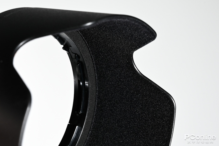 把镜头各个附件拆分,可以分为镜头遮光罩,三脚架连接环,镜头前后盖。先看看遮光罩,这款俗称“莲花形”设计的HB-92遮光罩,值得细说的是内里是吸光性材质的细植绒面,这是非常进步的设计!现在市场是很多遮光罩是用磨砂材质或者条纹圈,这个细植绒面能给抗逆光性带来多大提升?可以先给个结论,结果一定让你惊喜,详细情况可以往下看关于抗眩光的单独评测。