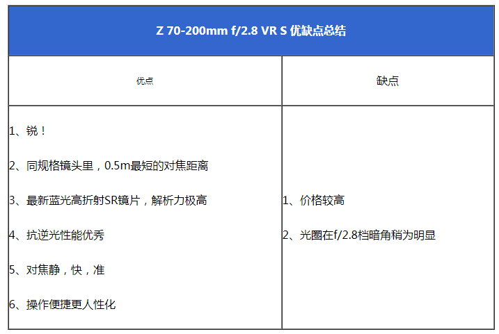 Z 70-200mm f/2.8 VR S 优缺点总结