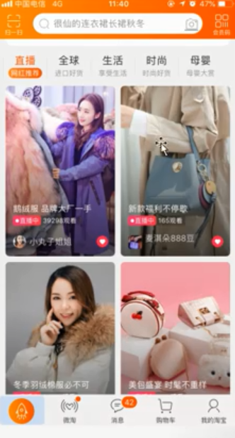 淘宝直播是阿里推出的直播平台,定位于“消费类直播”,用户可以“边看变边买”,用实时视频方式引领品质消费,通过粉丝打赏、关注及红包等多种互动模式,让消费过程充满趣味性。