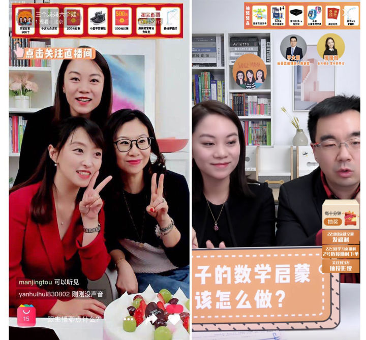 淘宝直播间开播不到10场,三个北大硕士妈妈就尝试了几场不同的内容风格,有各类学科启蒙专场、教育界大咖助场的分享、和妈妈共情的话题。所有的淘宝直播都体现了三个北大妈妈的专业度,和作为妈妈的温度。