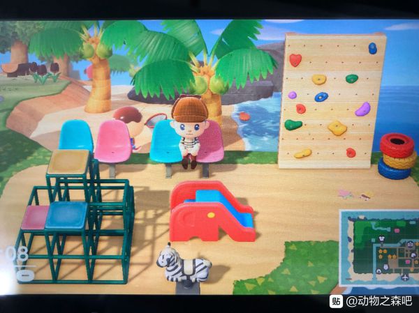 然后是毕克萝的家,一只灰色小熊,放了些比较可爱的家具就没什么了,在她家隔壁做了个人工沙地小公园。