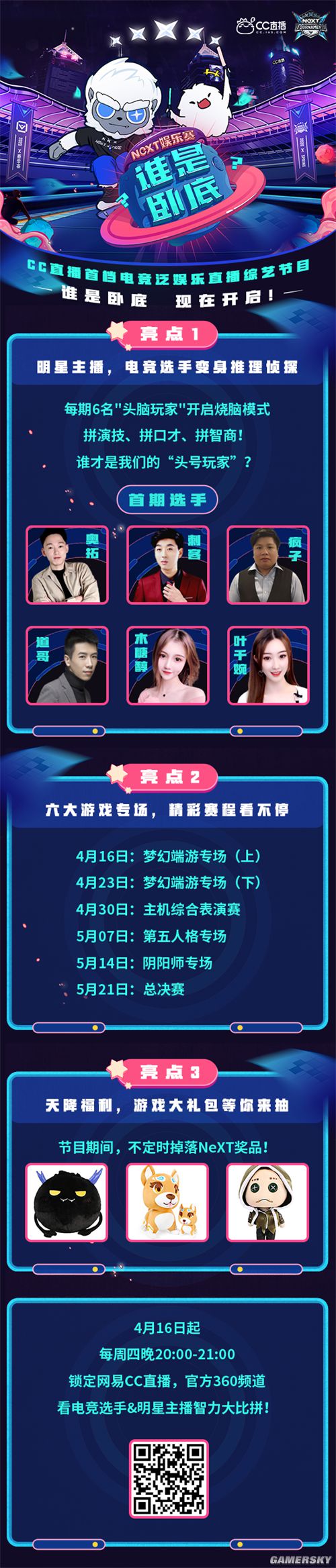网易电竞NeXT是网易自办的首个集合多款热门游戏的专业电竞赛事,自18年开启首届赛事以来至今已成功举办四届比赛。随着网易电竞NeXT2020春季赛的火热进行,有众多优秀的主播与电竞选手受到观众的喜爱,而《谁是卧底·NeXT娱乐赛》正应运而生。在NeXT娱乐赛中,观众们能与电竞选手零距离的互动,更能了解选手们私下不一样的有趣一面。CC直播正是看准了NeXT电竞赛事的泛娱乐开发潜力,对IP进行综艺上的开发,不仅延伸了电竞产业链条,还能对NeXT电竞赛事进行更广泛的社会化推广,发展更广泛而庞大的粉丝群。