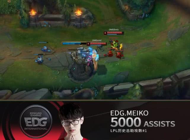 除此之外,我们看到这次EDG打得很干脆利落,直接2比0就拿下了,这场比赛里面有一位选手创造了历史,他就是meiko,我们看到meiko现在是拿到了5000个助攻,成为联盟第一人,现役选手里面的第二名是小虎,但是助攻相差上千万个,所以说还远着呢。