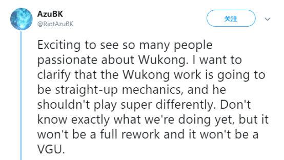 “鉴于玩家对于悟空这个英雄拥有很大的兴趣,我们会对这个英雄的技能机制进行较大的调整和改动(现在的确有些简单粗暴),但对于悟空本身的玩法不会推翻(依旧是战士、刺客),不会把他彻底重做,也不会对原画和英雄模型进行改动,一切还在考虑之中。”