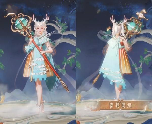 出场动画:山谷中神鹿苏醒,随后幻化人形,灵气唤醒万物。这个出场动画的特效和意境都很不错,有玩家评价其为传说级别的出场动画。