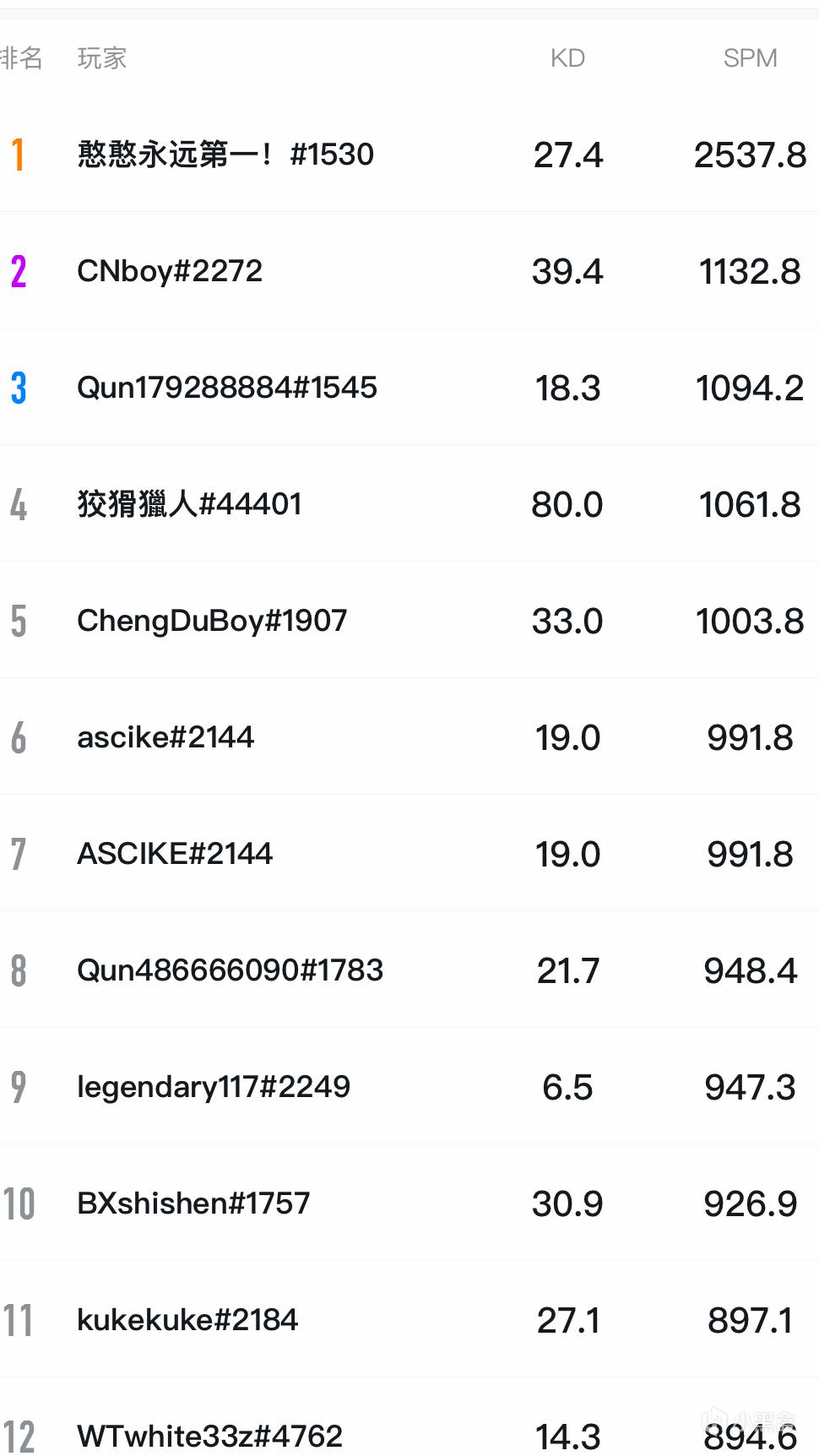 在诸位的SPM旁边,可以看到各自在当前所注册小黑盒玩家的大致排分位置,多数都是以百分比呈现(高段玩家将以具体数字呈现),因此爬分在这里就是指SPM(Score Per Minute),而爬排名,则是指此处的百分比排名。