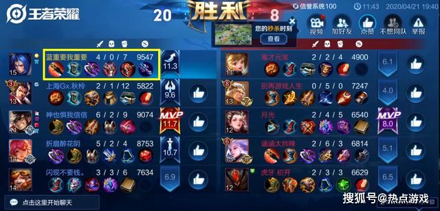 虽然橘右京并不是梦泪之前常用的英雄,但是在经过短暂的熟悉过后,梦泪对橘右京的使用也越发顺手,并打出4-0-7的骄人战绩,0死亡获得游戏胜利。