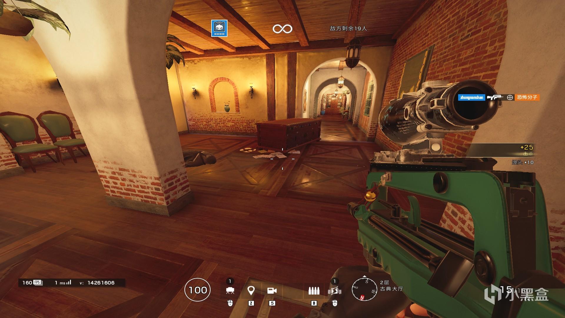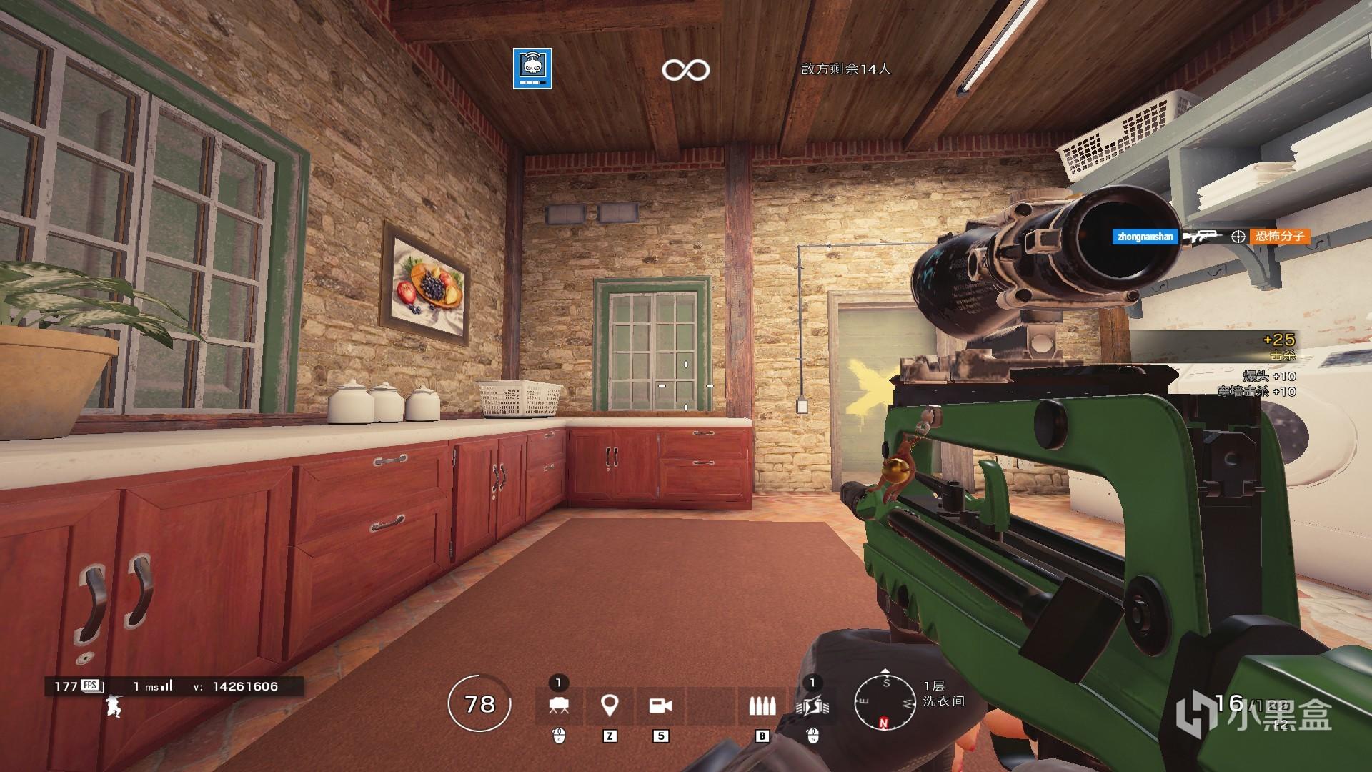 这里举例子。领事馆一楼小黑屋,图中开洞的地方我们很多玩家可能不知道这个点位叫啥,即使使用育碧官方的点位,很多玩家都是不熟悉的。但是这时候如果用我们厨房作为参照物,告诉队友厨房旁边的小黑屋有人,那么相信很多队友一下子就可以明白我们的意思。