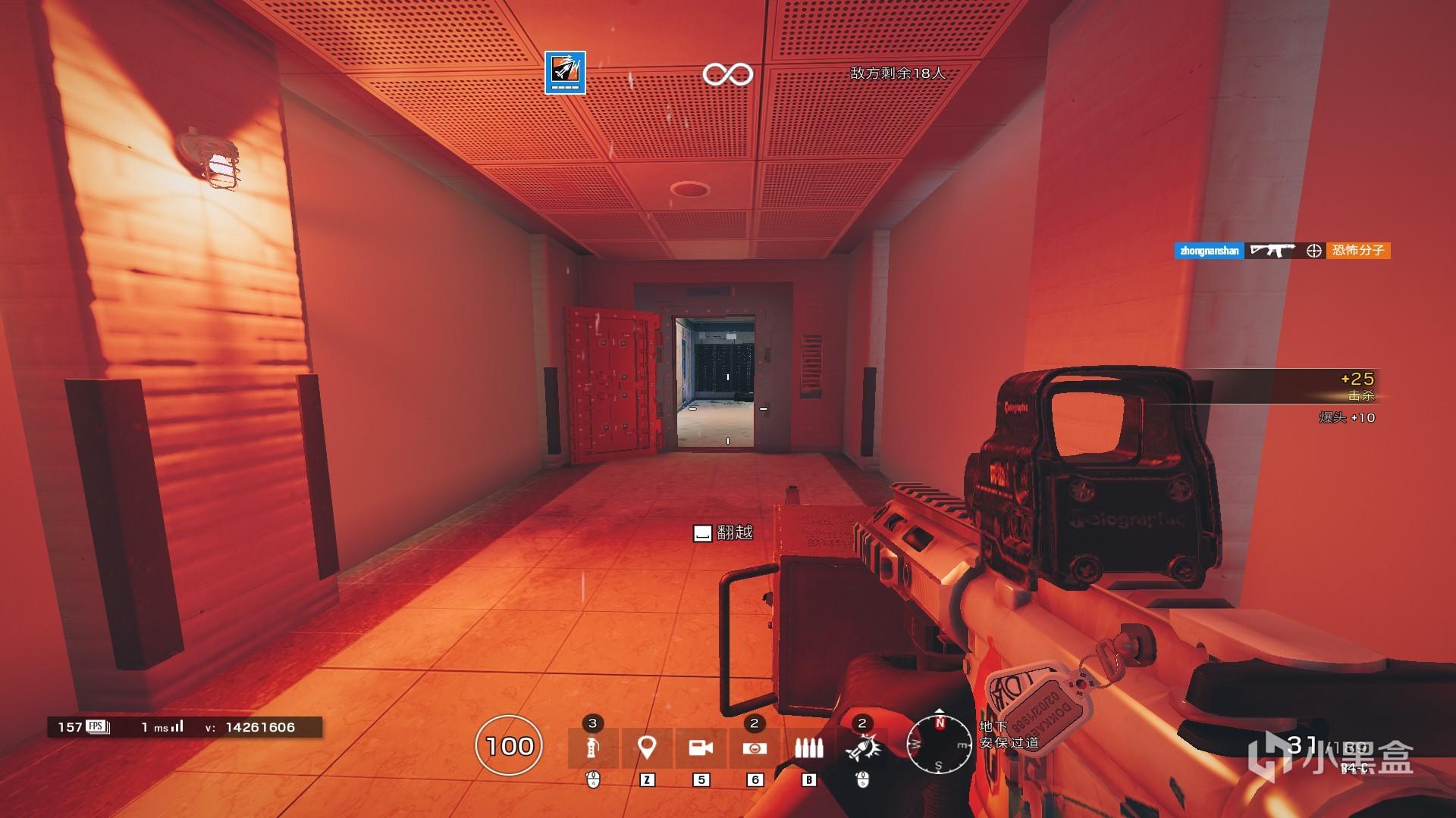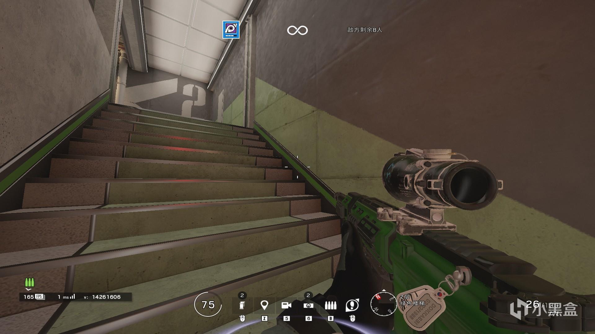 这里再次举一个例子,这个点位相信很多玩家都是知道有这里,但是报不出来,这时候同样可以利用参照物,因为这里头上有一块hatch,头上主卧室又是一个十分常用的点位,这时候我们就说主卧室hatch下面的房间进人了,那么相信绝大部分玩家都能瞬间理解你的报点。这也再次说明了,熟悉地图对于r6的重要程度。