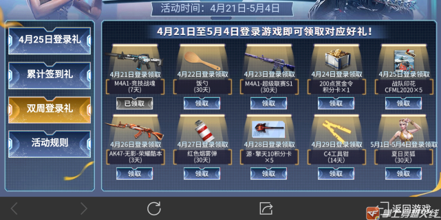 虽然每日签到的累计奖励只有3种,但是在双周登陆礼中,每天还能够领取不同的奖励。这第一天的奖励就十分贴合大家的胃口,它是首款赛事专属武器:M4A1-竞技战魂。