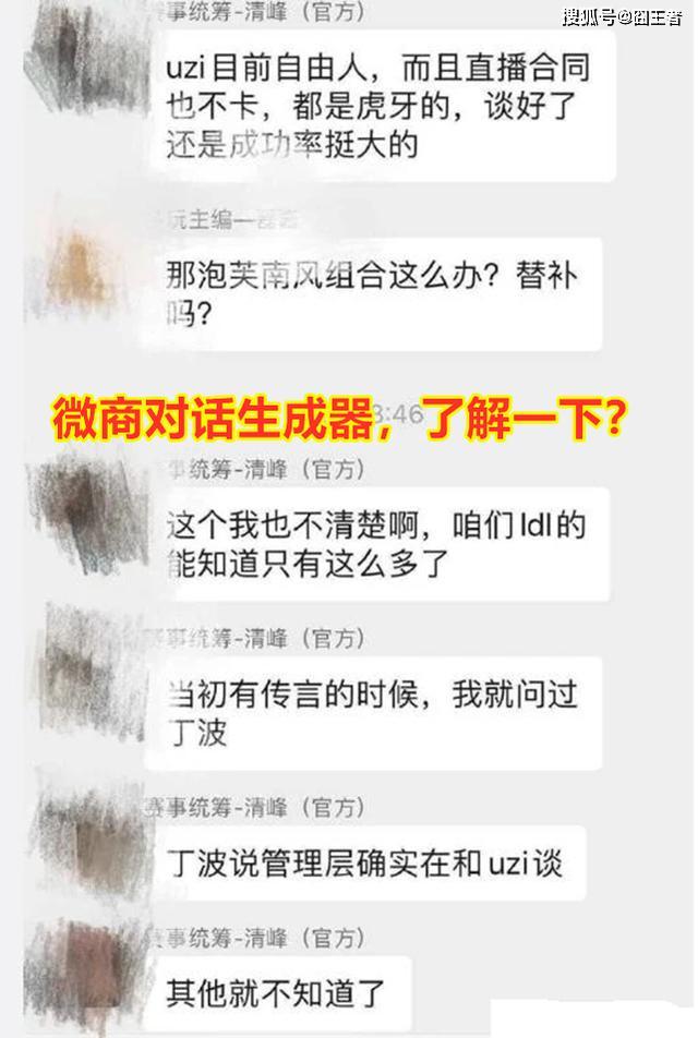 那么这个不靠谱的传闻,到底是哪里来的呢?囧王者这两天翻遍了全网,大概能找出的最早的来源,就是这样一则没头没尾的聊天对话了。据说是一名来自LDL的官方人员在聊天的时候透露的,还说的有鼻子有眼的,说什么“IG的丁波确实在UZI谈”“UZI合同到期,是自由人”“直播合同也不卡”,等等诸如此类的爆料。可是这种没头没脑的爆料,囧王者分分钟可以做出许多来。你信不信,我可以搞一个RNG因为S10成绩不好,在秘密接洽Faker来顶替小虎的“爆料”来?这种聊天对话框的所谓爆料早就过时了,现在连视频爆料都有可能是假的,AI自动换脸DeepFakes了解一下?