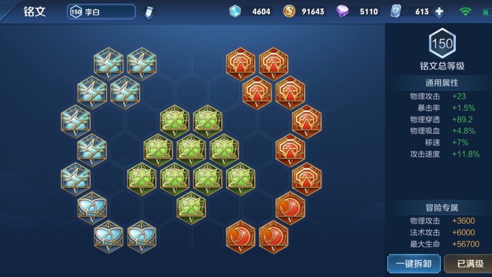 李白铭文推荐带百穿铭文,根据自身的喜好带一定的攻速铭文,三个夺萃前期吸血续航已经够用了。
