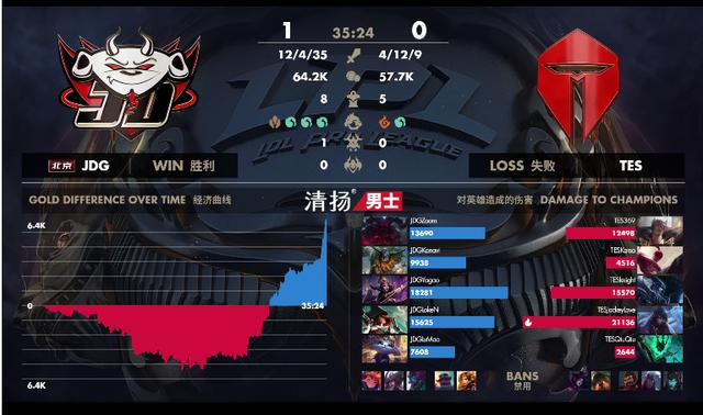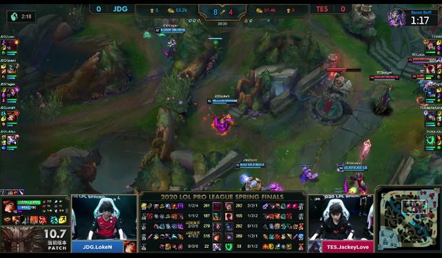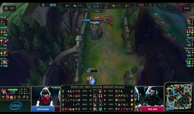 [14:20] 盲僧再次控下峡谷先锋。之后,盲僧在中路交出,成功破掉JDG中路一塔。接着,JDG在下半河道抓到机会,依靠妖姬的控制技能,击退TES,JDG拿到水龙。