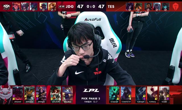 双方BO5第一局开始,蓝色方JDG,红色方TES。