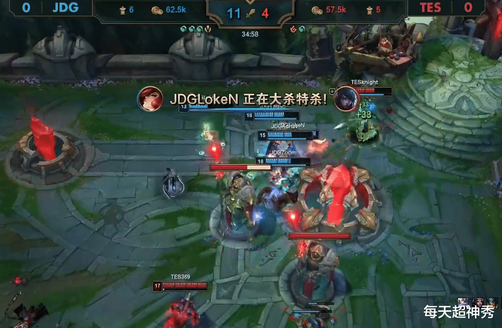 由于优势太大,JDG可以轻松拿下水龙魂,此时TES已经失去了抵挡的能力,面对抱团推进的JDG五虎,TES节节败退,卡萨和Qiuqiu先后被击杀,Jackeylove也未能幸免于难,最终JDG在35分钟轻松击溃TES,一波终结比赛,旗开得胜。