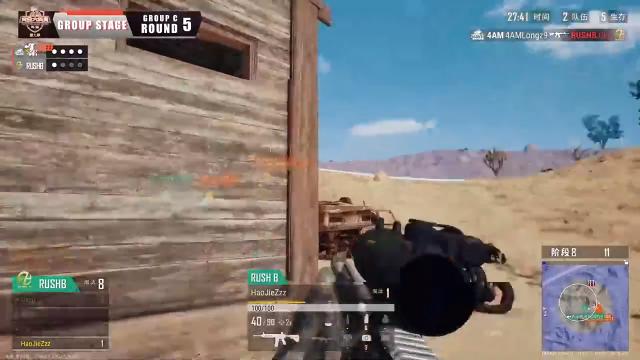 在C组R5中,三人的RuShB与满编4AM联手淘汰掉三人队的VC战队后,战局瞬间变成了RuShB与4AM的对决,RuShB立刻呈一字散开对枪,想通过侧面枪线,压制4AM战队的进攻,奈何人数不具优势的RuShB接连被4AM击倒在地,仅剩一人存活的RuShB再也无力回天,最后4AM全员出击,带走了HaoJieZzz了。
