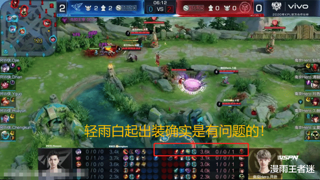 RW侠跟hero久竞这场比赛打完之后,网上起了不少争议。其中解说李九是被吐槽得最惨的一个人。因为在解说这场比赛的时候,李九很不满hero久竞整体表现,所以言语有些过激了。李九甚至直言黄教练做出这样的BP、选出这样的阵容还不如“回家种地”,他还直言轻雨不会玩白起,白起乱出装(第一个大件出冰心)。