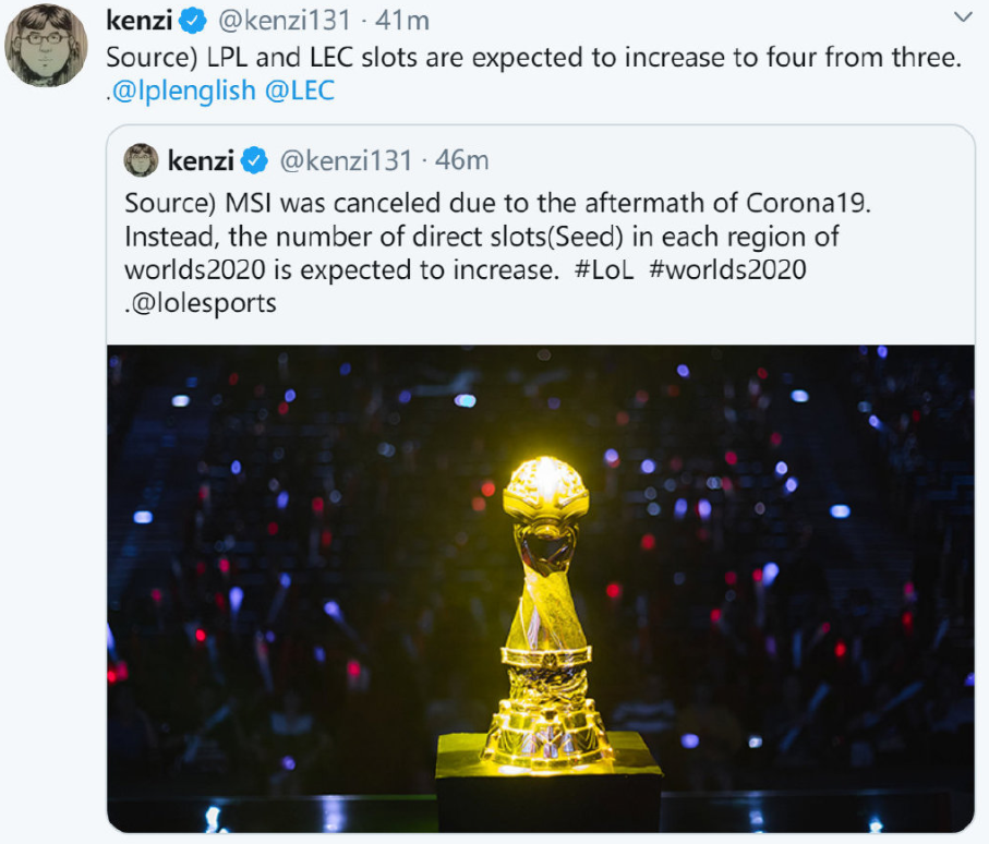 拳头对于此事也做出了回应,虽然MSI季中冠军赛取消掉了,但是LPL和LEC因为近两年以来,在国际赛事上面的表现非常不错,于是全球总决赛名增加到了4个。这种做法也让很多的小伙伴们非常的开心,因为今年的全球总决赛会在中国上海举办,所以可以看到更多的LPL队伍进入到全球总决赛中。