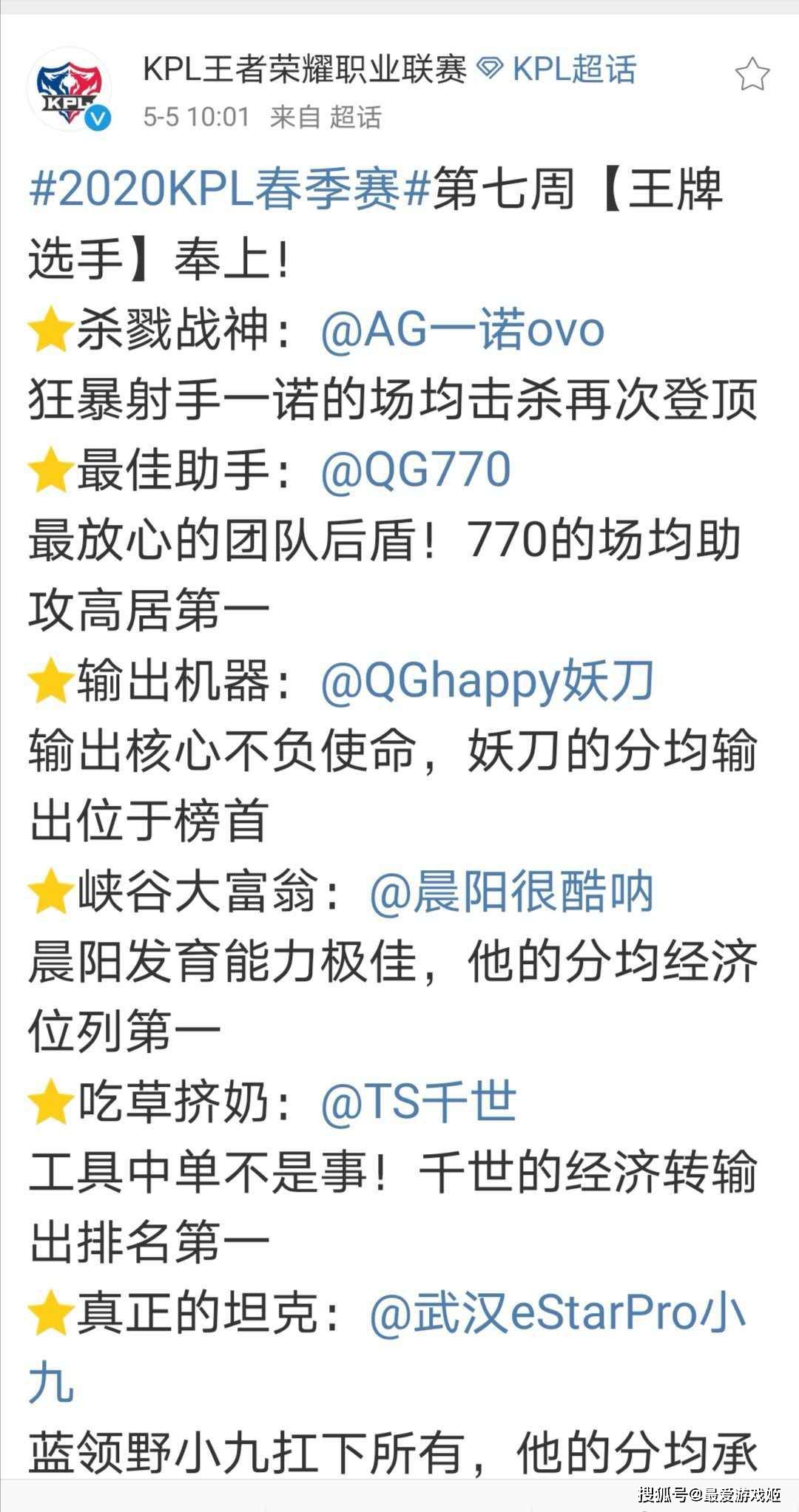 目前来说KPL的春季赛已经到了后半段了,LGD大鹅也凭借优异的成绩提前拿到了季后赛的门票。而剩下的很多强队之间还有十分激烈的竞争,毕竟现在所有的战队都要以进入季后赛为主。官方也公布出了几名最佳选手,这些选手可以说都是当前比较优秀的选手,更是被官方认可能力的优秀人才。