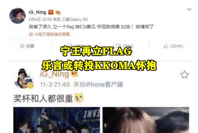 首先让我们来看看乐言转投KKOMA这条消息,到底有多少可信度。2020年5月4日晚,宁王的一条动态登上热搜:卸载WB了,夺冠就结婚。相信大多数吃瓜群众看到这条动态,第一感觉就是眼熟,毕竟这不是宁王第一次立下这种FLAG,但巧的是,他上一次立下FLAG还真就夺冠了。于是不少IG的粉丝对宁王也是充满期待,毕竟浪子回头金不换,巅峰时期的宁王还是非常恐怖的。倒也不是说乐言有多差,只是纵观这大大小小无数场比赛,最适合IG的打野依然是宁王,顺风扩大优势是大多数打野的必备技能,但像宁这种逆风局不怕背锅无视压力敢于冒死开团的打野,又有几位呢?