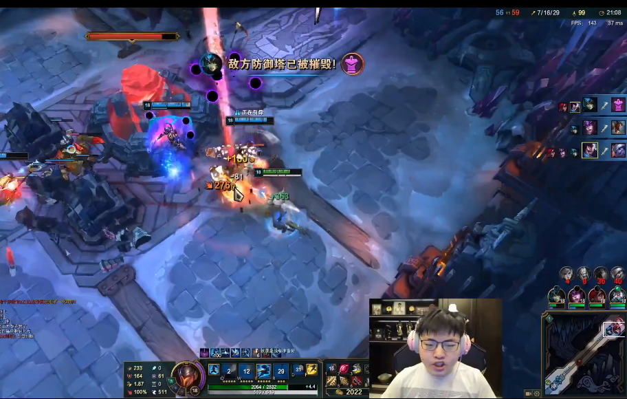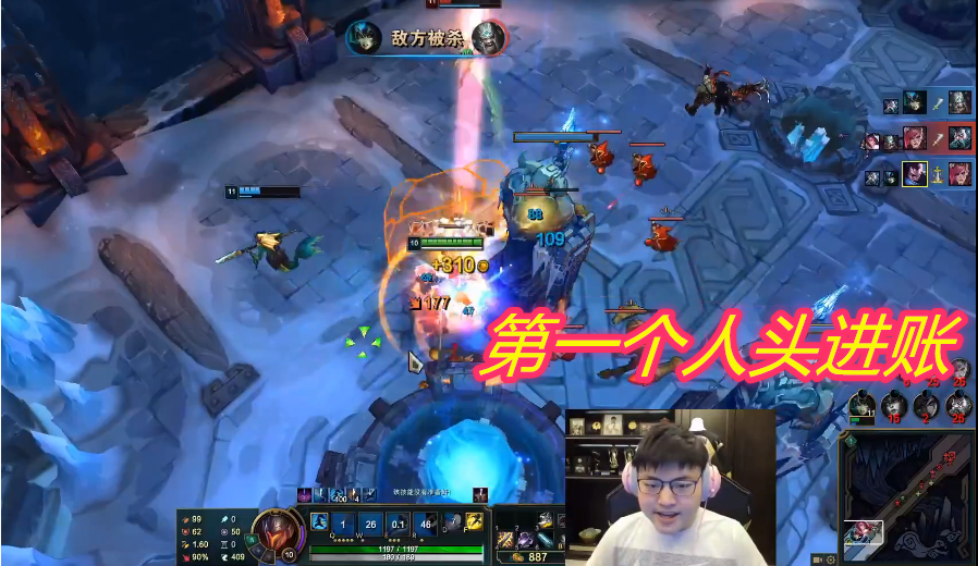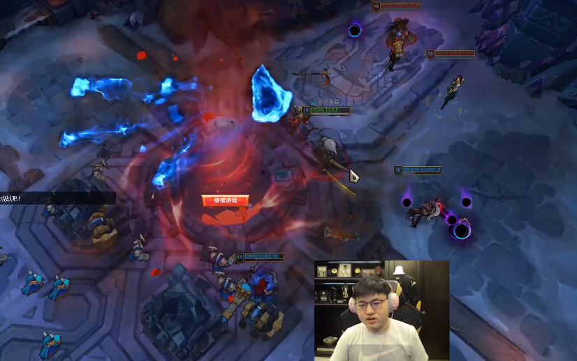 作为自己直播间的水友,大家肯定都不想放过小狗。对面的阵容还是比较不错的,像稻草人这种强开团的英雄,逮到小狗就是一顿胖揍。小狗前期被针对的特别惨,对面蔚的大招永远都是留给小狗的亚索。而自家的时光,更是紧跟小狗一步不离,生怕他就此阵亡了。