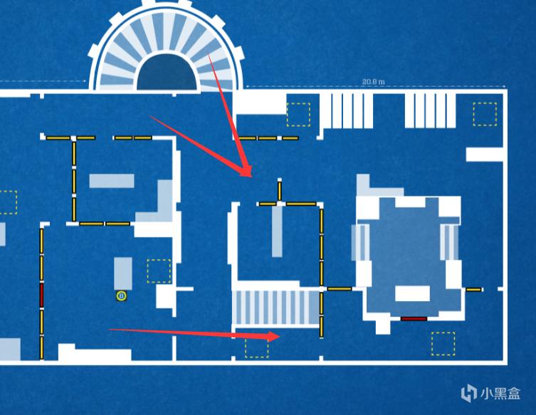 一楼平面的进攻路线是极度匮乏的,特别是如果防守方在携带castle的情况下。