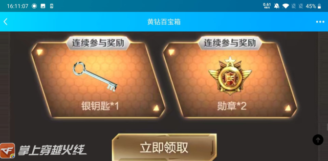 最后还有一个连续参与活动的小彩蛋,大家可不要忘记领取哦。如果大家参与过第三期的百宝箱活动,并且第四期也开通了豪华黄钻,就能在本页面中直接领取1把银钥匙和2个勋章。