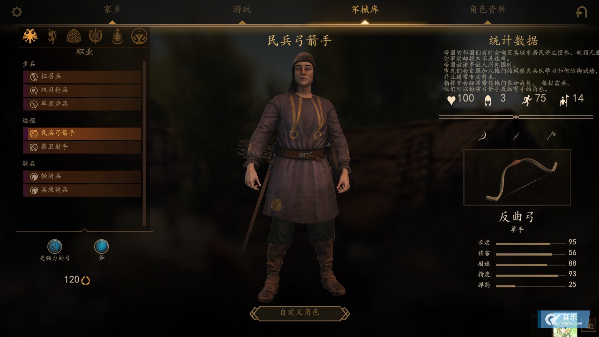 民兵弓箭手来自临时拉上战场的城镇小市民,防护连征召兵都不如,帝国要求只要能拉开弓即可,实际上打不打得中看天。