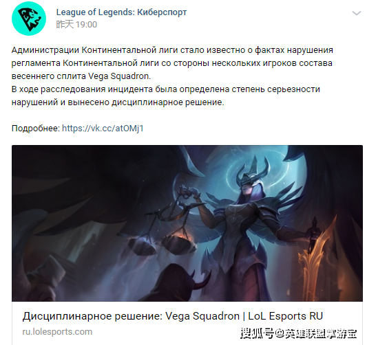 昨日,英雄联盟的独联体赛区LCL对Vega战队的三名选手+教练做出了禁赛行为,原因如下: