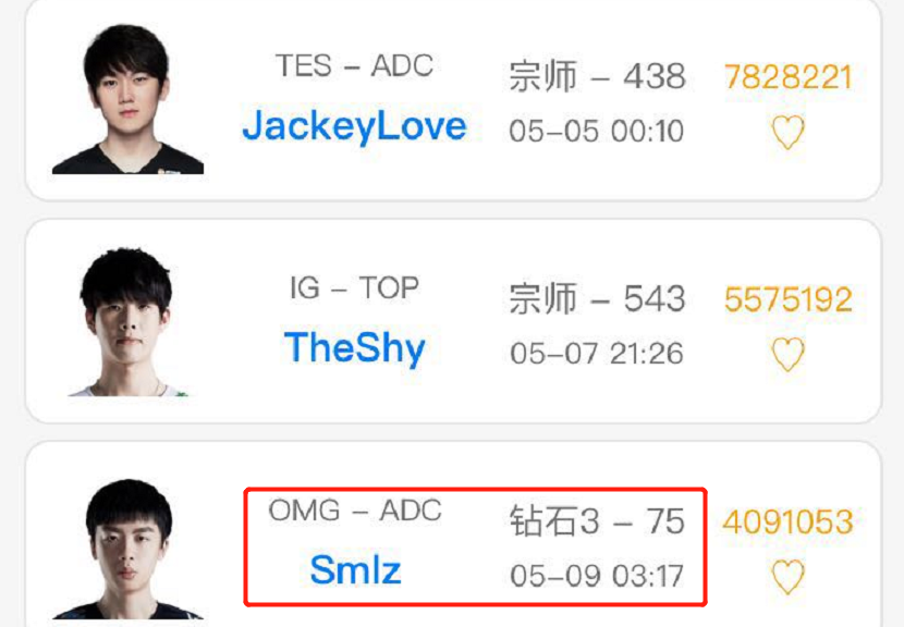 走进LPL职业选手受关注度Rank榜,人气极高的OMG马哥数据不理想,截止到5月9日凌晨时分,OMG马哥在S10赛季进行了超过600场Rank,战绩329胜356负,目前跌到了钻三75胜点,这也是马哥S10的新低。