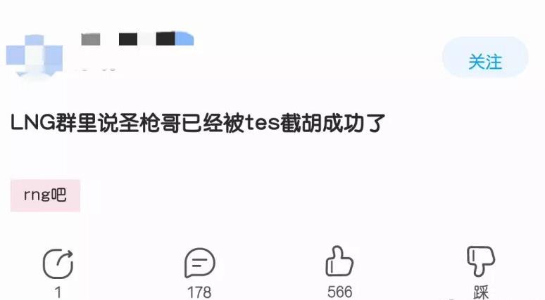 除了抗压背锅吧的消息之外,在RNG贴吧里面,也有爆料人在差不多的时间透露:TES成功截胡了圣枪哥。这位爆料人的贴吧发言记录中可以看到,他的确是LNG的老粉丝了,也一直是圣枪哥的死忠粉丝,只不过如果真的是LNG群里所说的,应该还会有消息流出来。