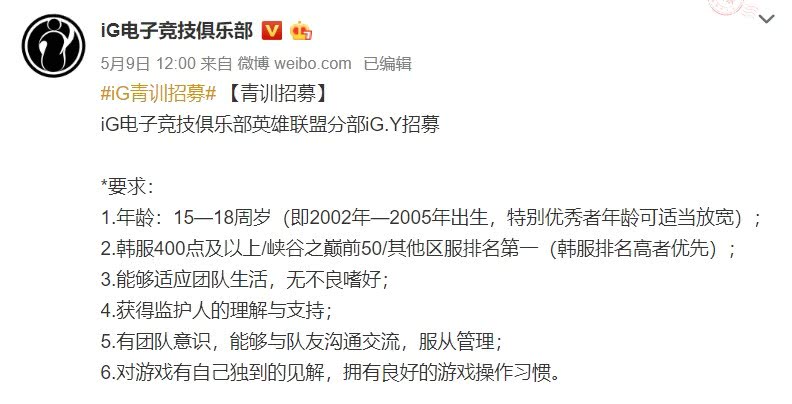 编后语:关于《IG也太严格了吧!公开招募路人玩家,比FPX和RNG条件更苛刻》关于知识就介绍到这里,希望本站内容能让您有所收获,如有疑问可跟帖留言,值班小编第一时间回复。 下一篇内容是有关《德云色谈iG打不过TES很正常,TES工资比iG贵,RNG很难进S10》,感兴趣的同学可以点击进去看看。