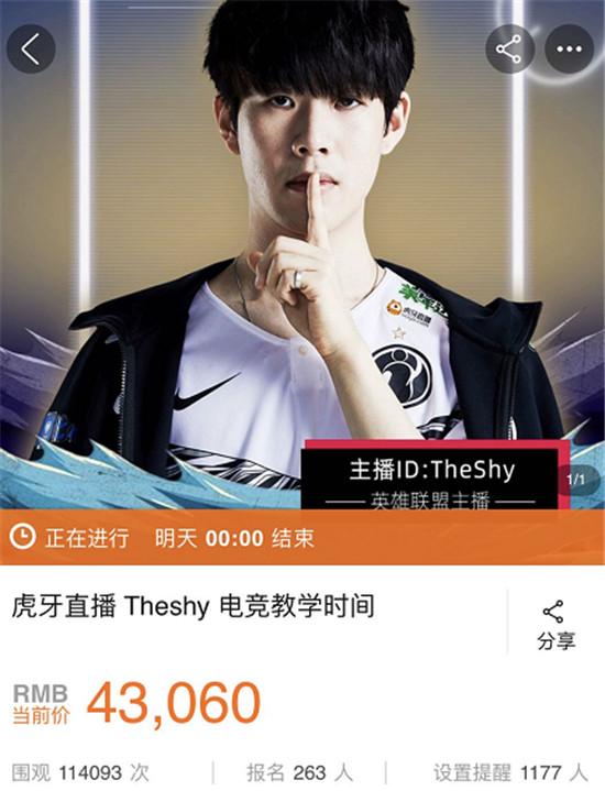 目前拍卖也是正火热进行中,而the shy不愧是LPL当前人气最高的上单选手,他的1小时时间也是被抬价达到四万多元。