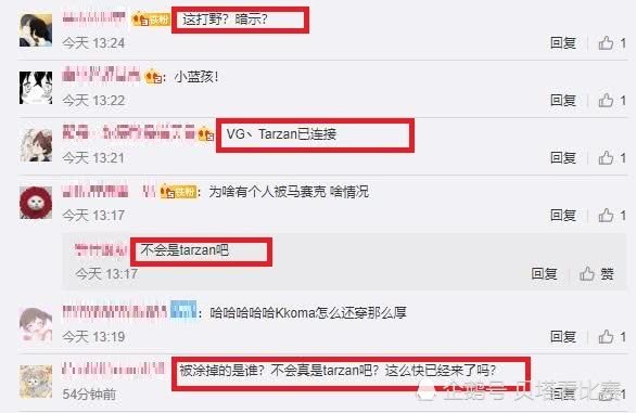 在VG官博下方的评论区,也有很多人在各种猜测,主要就是前段时间LPL和LCK这边都有消息传出Tarzan要加入VG,刚好VG发布的团建照片中,又有一个人被打码了,因此很多人怀疑是不是Tarzan已经来到了VG的基地,只是因为官方还没有审核通过,所以暂时无法公布。