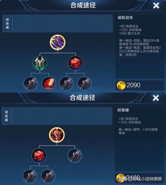 1.技能型战士,比如关羽、曜等英雄,可以利用暗影战斧+碎星锤的双穿装备来代替以往的暗影战斧+破军或暗影战斧+宗师之力,这一点可以参考KPL职业选手的出装。