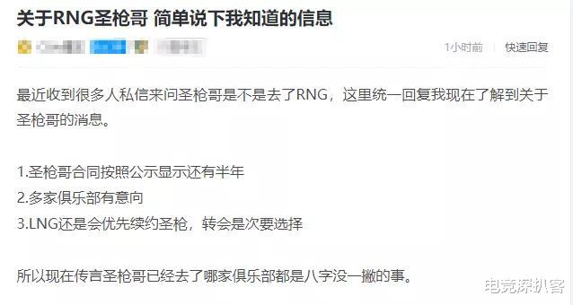 而圣枪哥的传闻是要加入RNG战队,不少网友都觉得可信度非常高,毕竟RNG战队上单一直饱受诟病,但又有人说,TES截胡了圣枪哥,圣枪哥将加入TES战队,知情人表示,RNG夏季赛小狗回归,将会有一名轮换中单,并不会买圣枪哥,而TES作为今年的银河战舰,显然更需要圣枪哥坐镇,并且根据目前的转会情况,在夏季赛,会出现七雄争霸的局面。