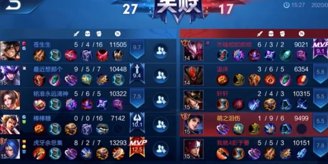 对于这样的战绩,梦泪也是挺不好意思的,也是很担心被举报,果真,赛后一看还真是被举报了,自己也是挺不好意思的,这把确实是自己前期太凶了,硬是要和马超打,把马超送起来了。