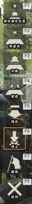 F1 为移动 ,输出指令F1+ F1 ——前往指定位置、 F2——跟着我、 F3—— 冲锋、 F4—— 前进、